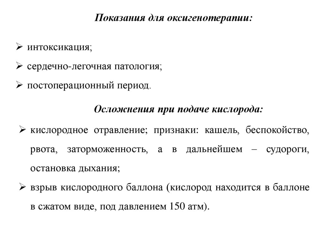 20. Перечислите показания и противопоказания для проведения оксигенотерапии.