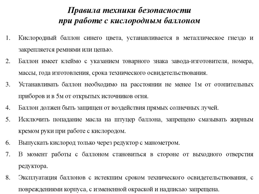 23. Расскажите о технике безопасности при работе с кислородом.