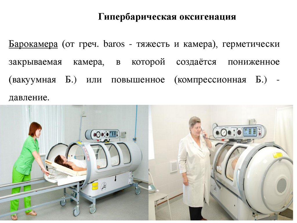 Гипербарическая оксигенацияБарокамера (от греч. baros - тяжесть и камера), герметически