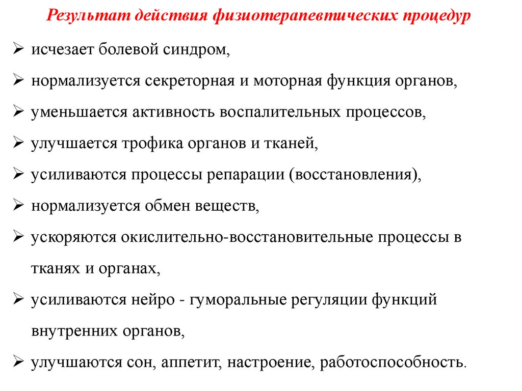 6. Охарактеризуйте результаты воздействия на организм человека физиотерапевтических процедур.