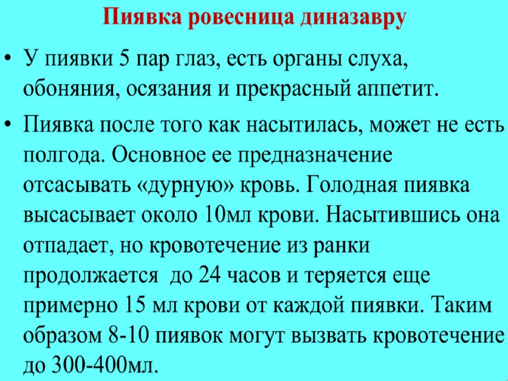 так как постановка и время экспозиции пиявок может иногда