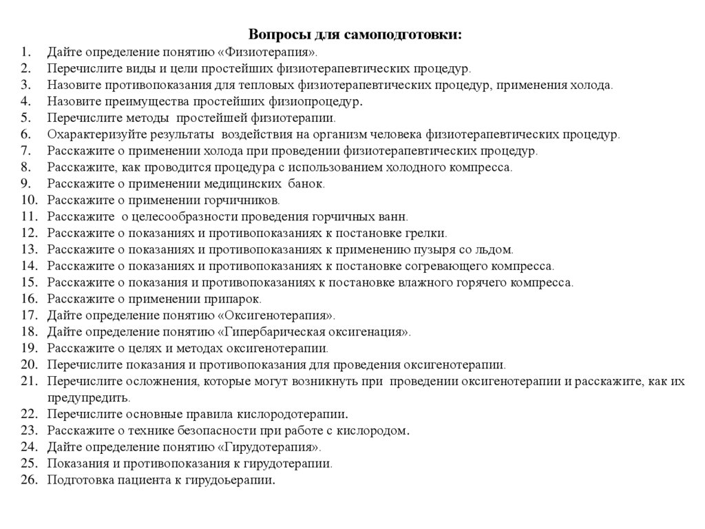 Вопросы для самоподготовки:1. Дайте определение понятию «Физиотерапия».