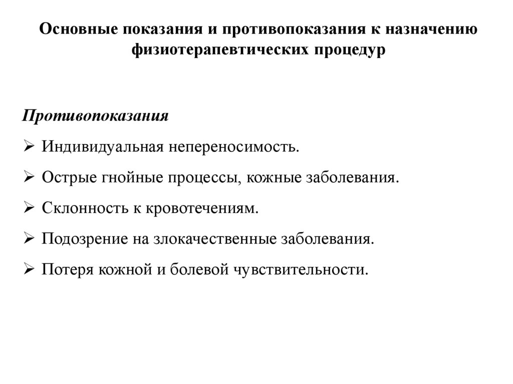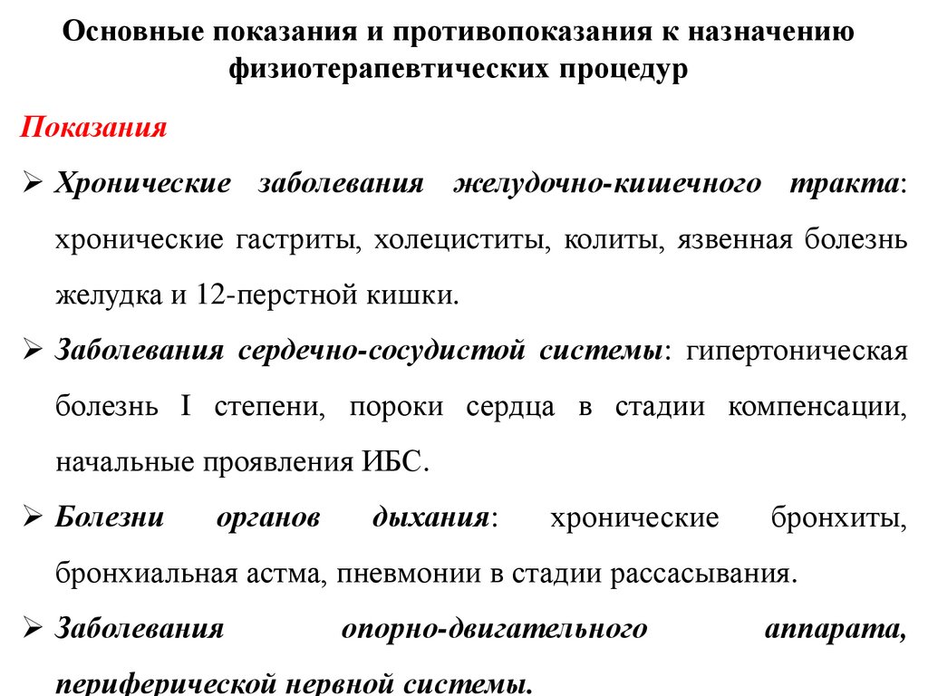 Основные показания и противопоказания к назначениюфизиотерапевтических процедур