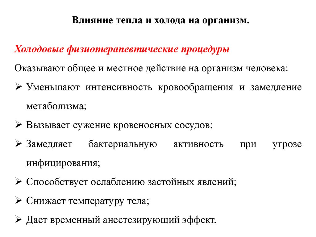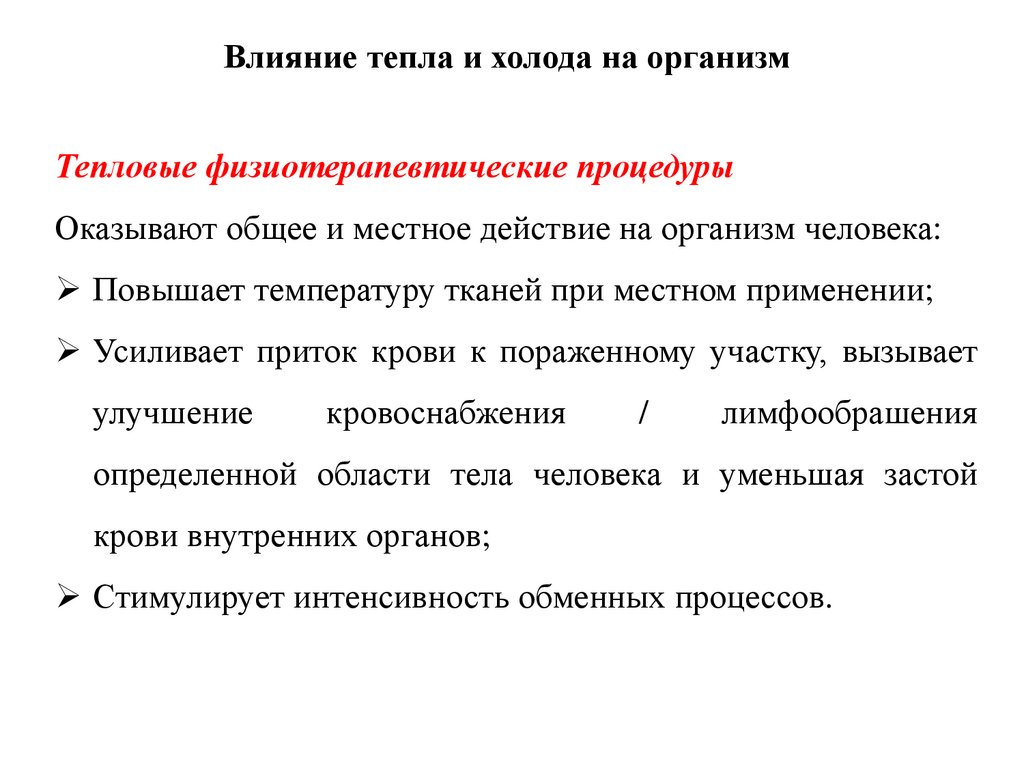 Влияние тепла и холода на организмТепловые физиотерапевтические процедуры
