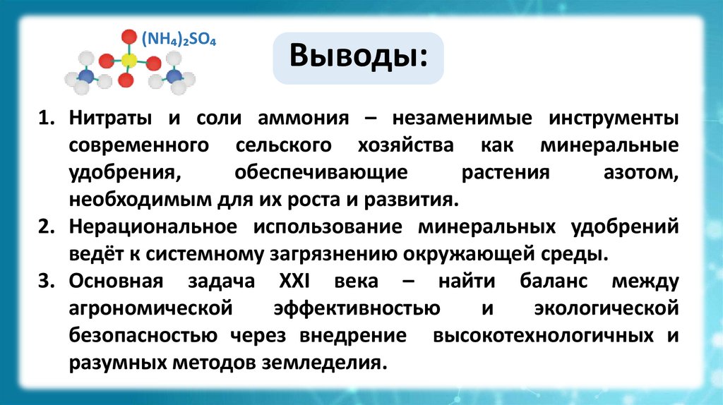 Тема урока:«Использование нитратов и солей аммония в качестве