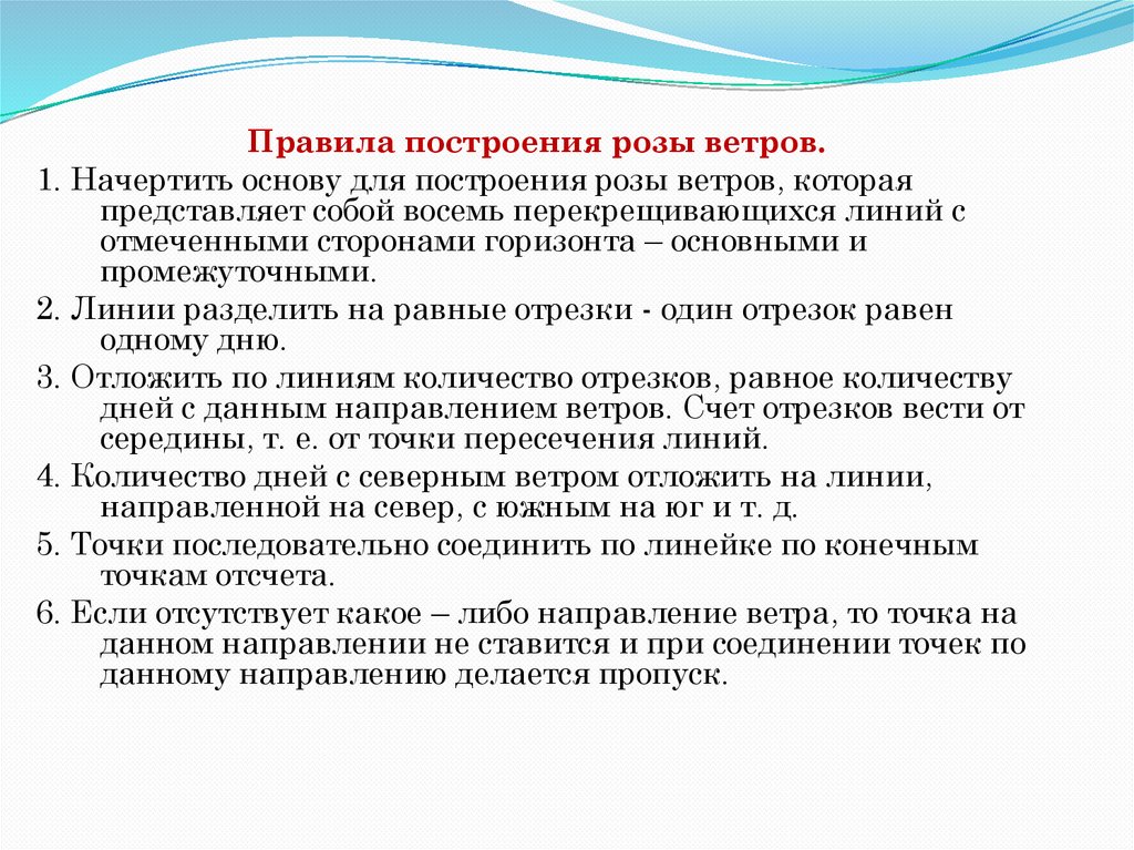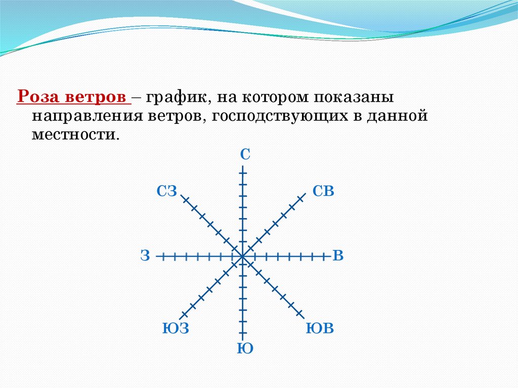 Роза ветров – график, на котором показанынаправления ветров, господствующих в данной