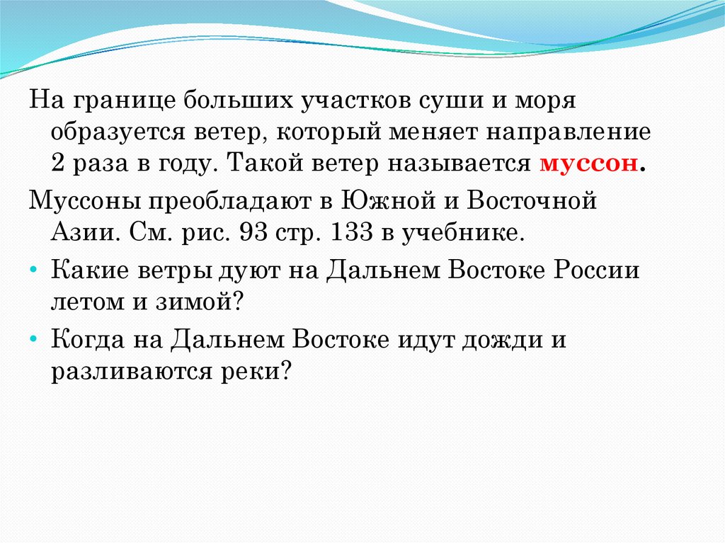 На границе больших участков суши и моряобразуется ветер, который меняет направление