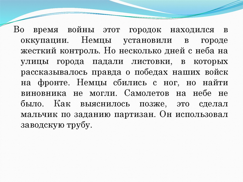Во время войны этот городок находился воккупации. Немцы установили в городе