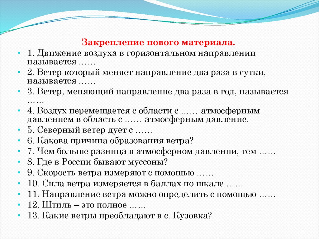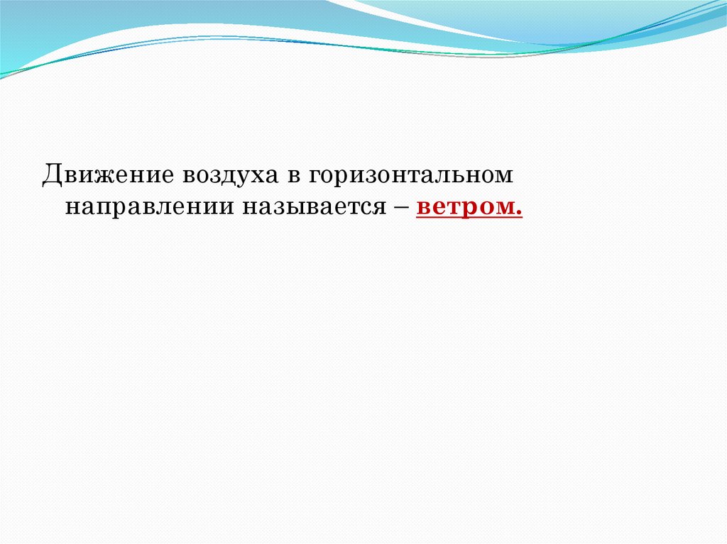 Движение воздуха в горизонтальномнаправлении называется – ветром.