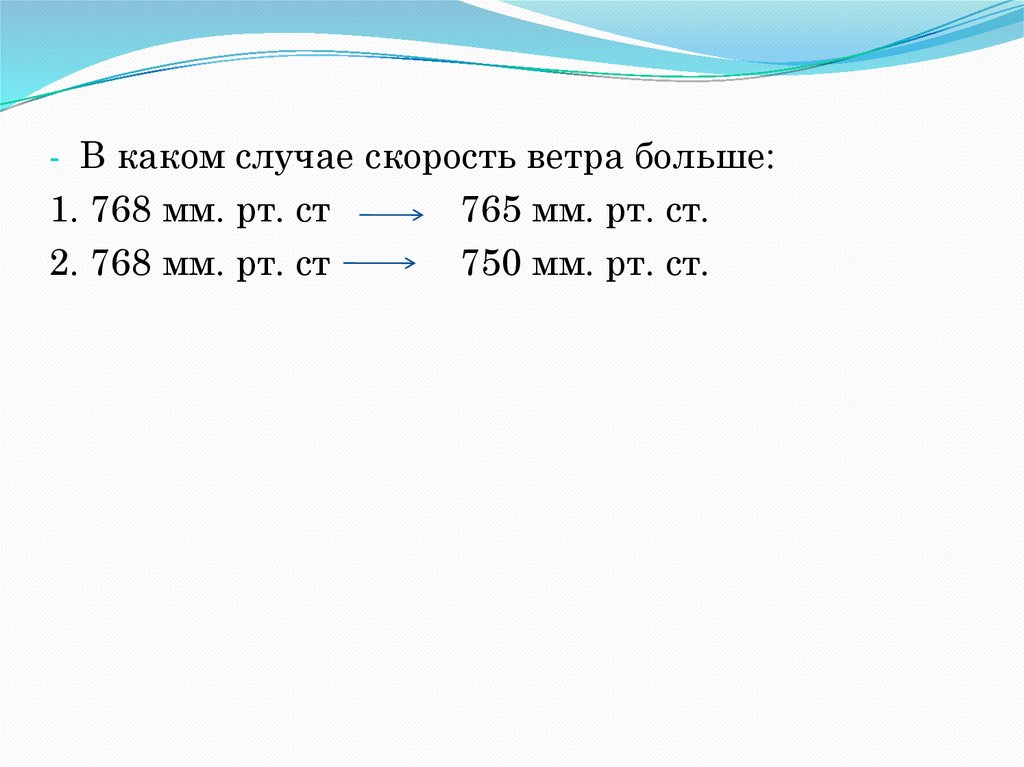 - В каком случае скорость ветра больше:1. 768 мм. рт. ст