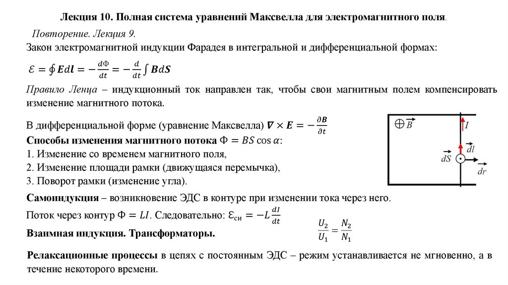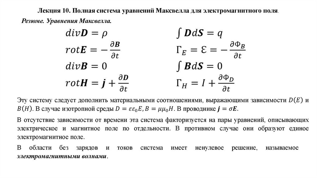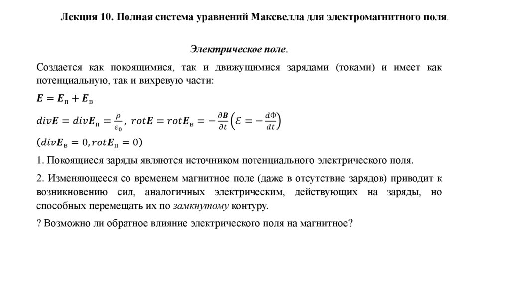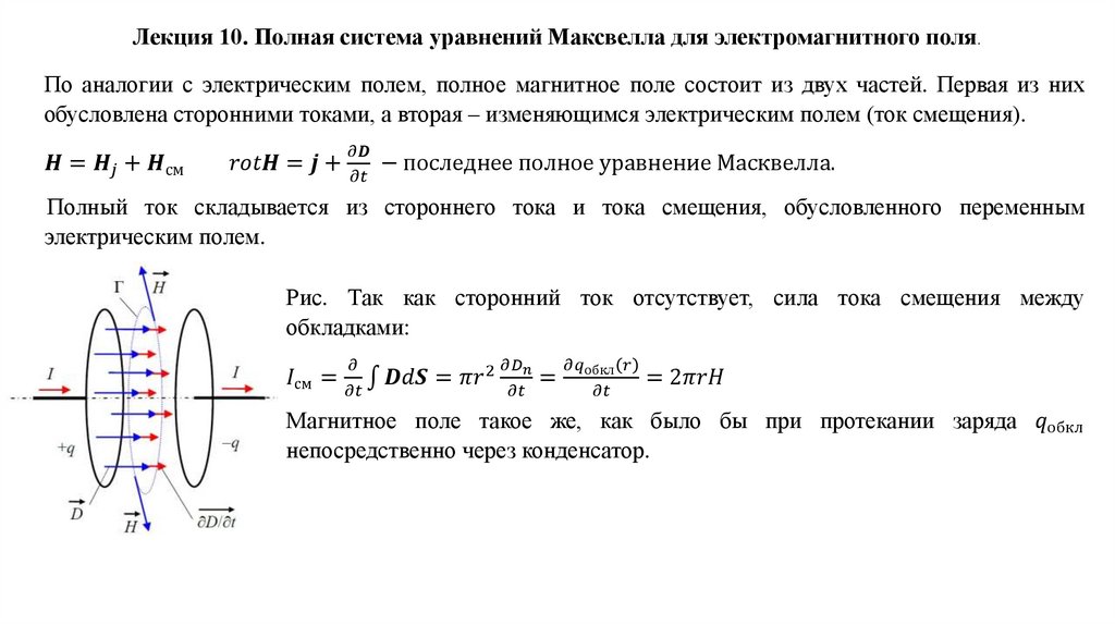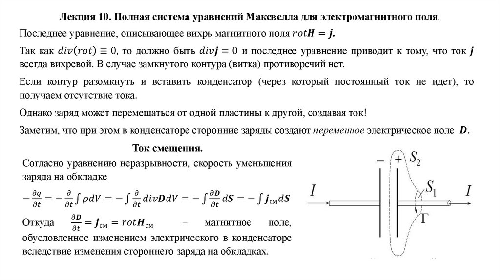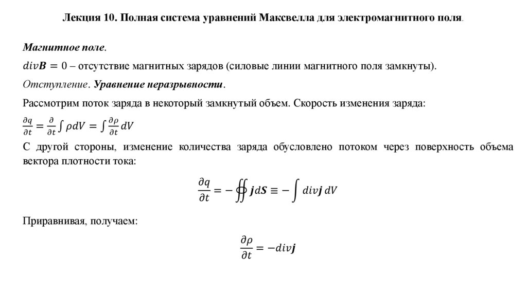 Лекция 10. Полная система уравнений Максвелла для электромагнитного поля.
