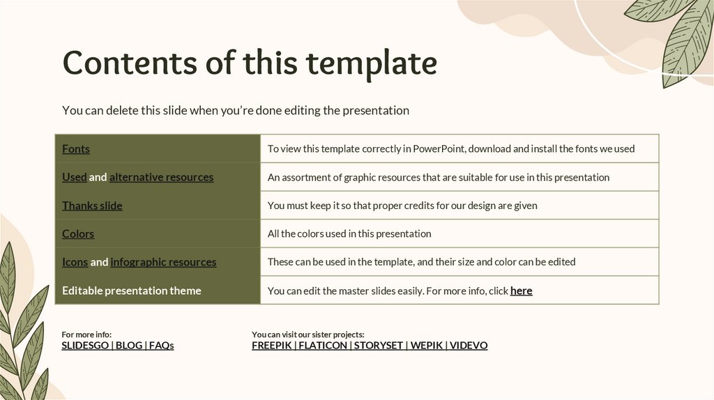 Contents of this templateYou can delete this slide when you’re done editing the presentation