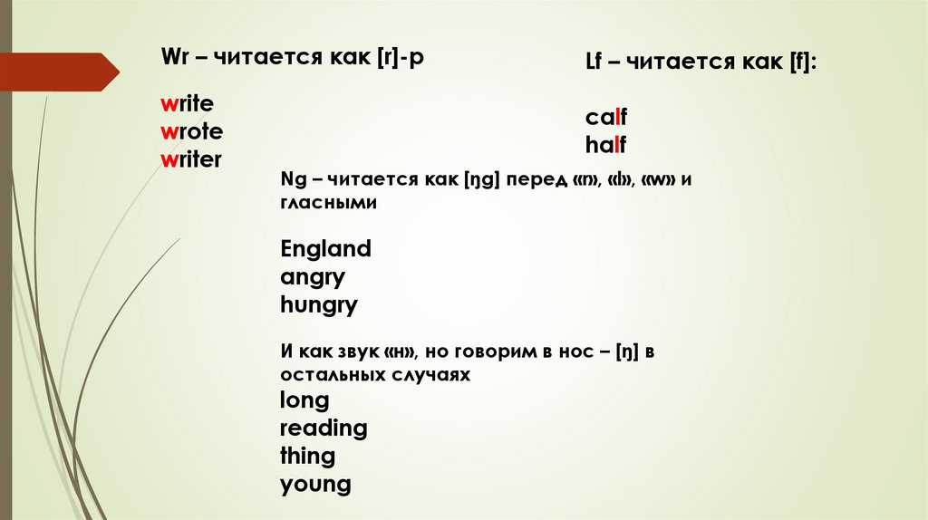 Ng – читается как [ŋg] перед «r», «l», «w» и