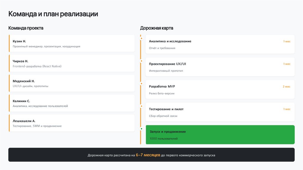 Команда и план реализации