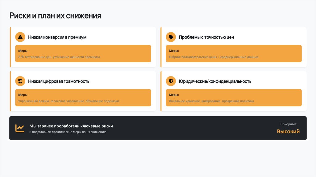 Риски и план их сниженияНизкая конверсия в премиум