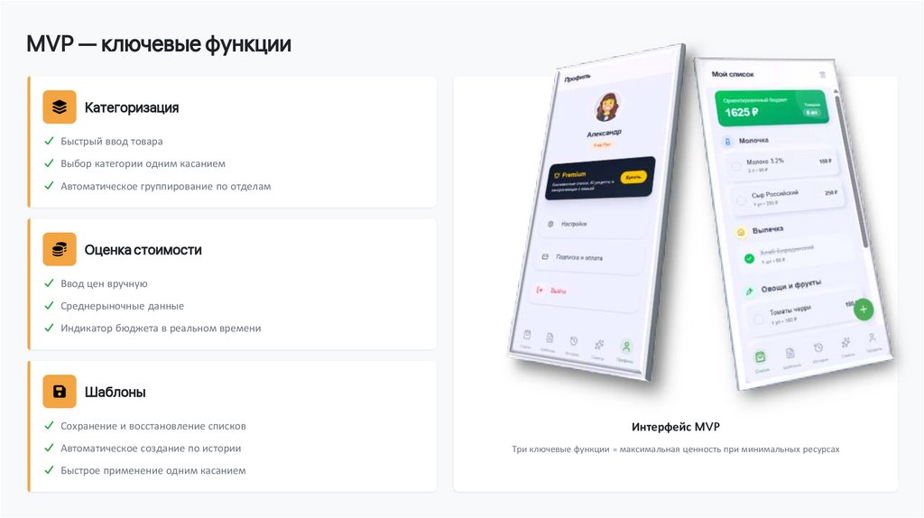MVP фокусируется на трёх ключевых функциях, дающих максимальную ценность