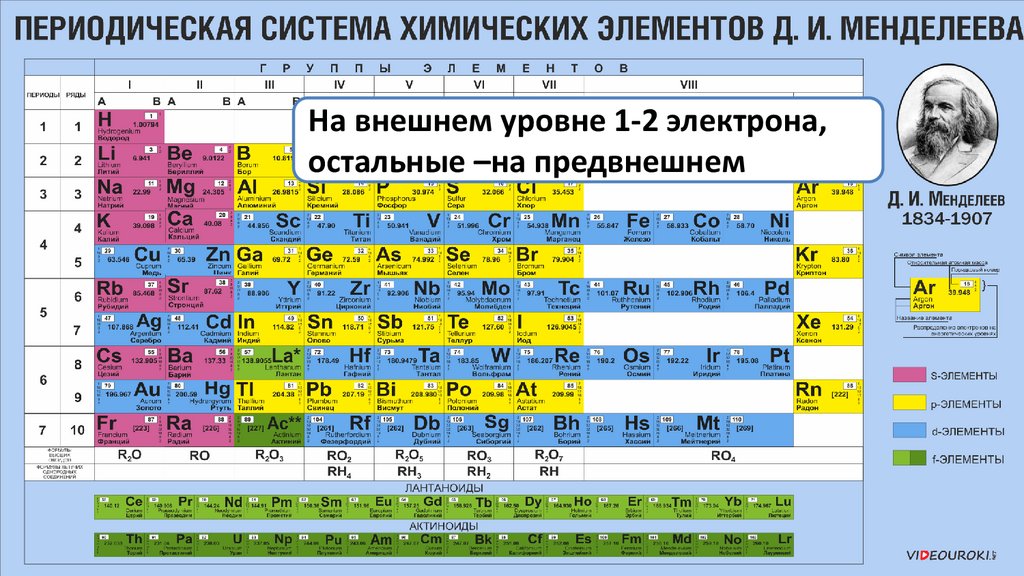 На внешнем уровне 1-2 электрона,остальные –на предвнешнем