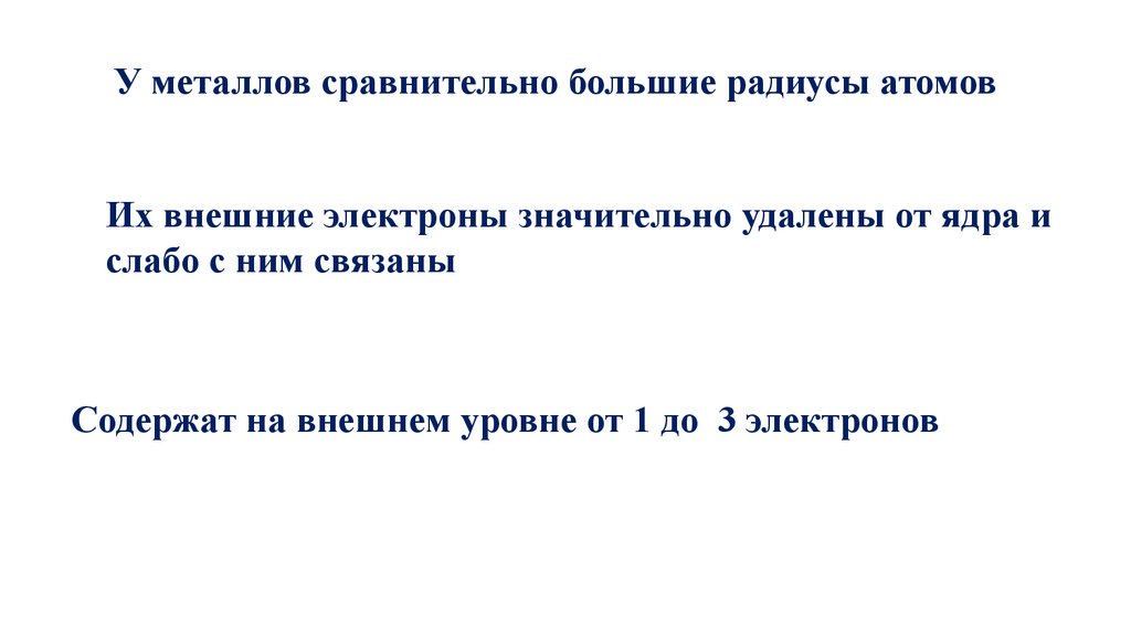 У металлов сравнительно большие радиусы атомовИх внешние электроны значительно удалены от ядра и