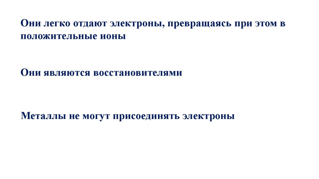 Они легко отдают электроны, превращаясь при этом вположительные ионы