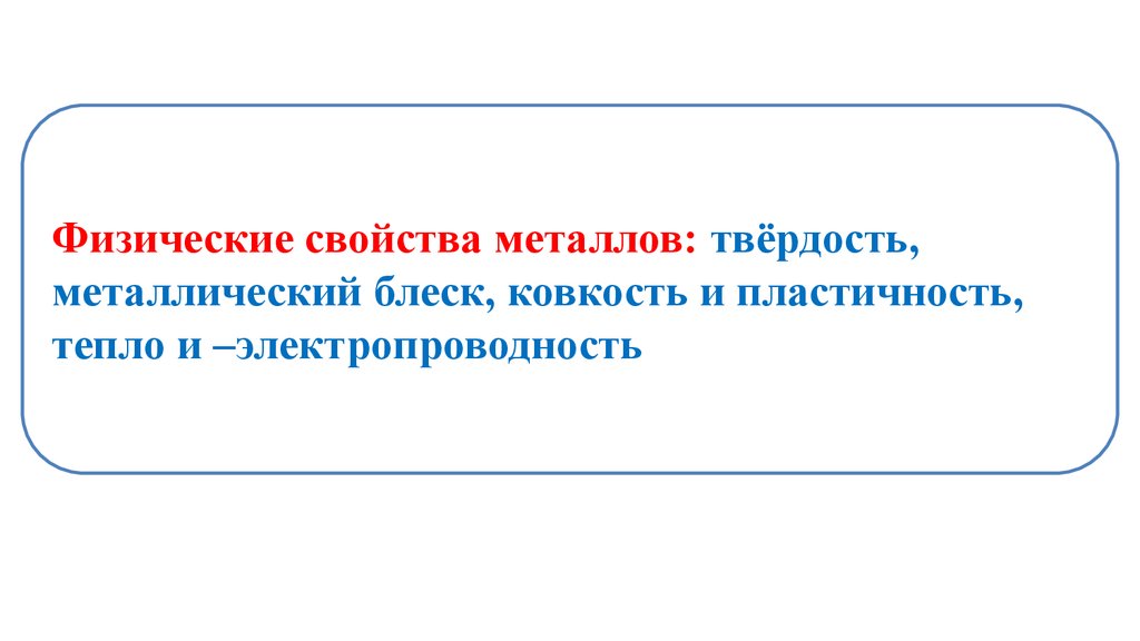 Физические свойства металлов: твёрдость,металлический блеск, ковкость и пластичность,