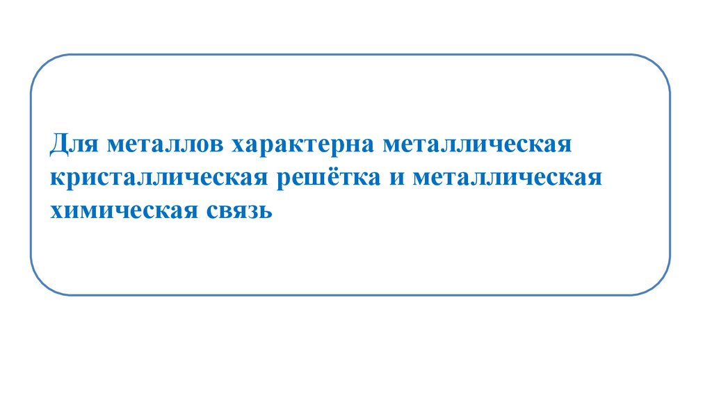 Для металлов характерна металлическаякристаллическая решётка и металлическая