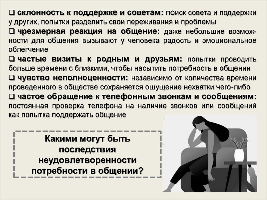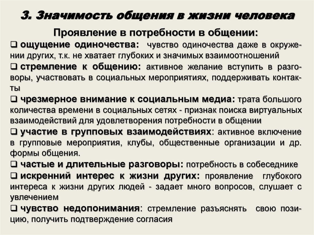 3. Значимость общения в жизни человекаПроявление в потребности в общении: