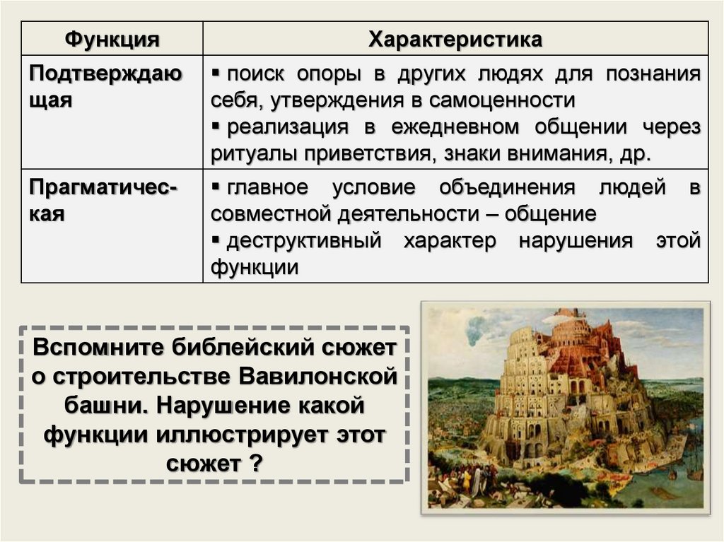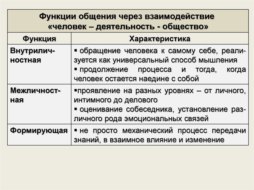 Функции общения через взаимодействие«человек – деятельность - общество»