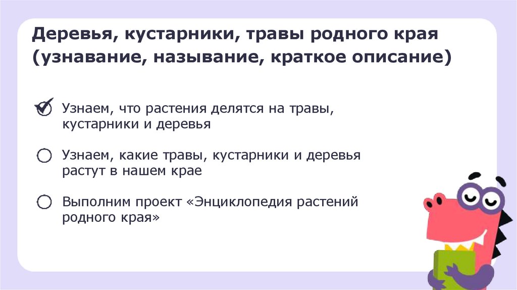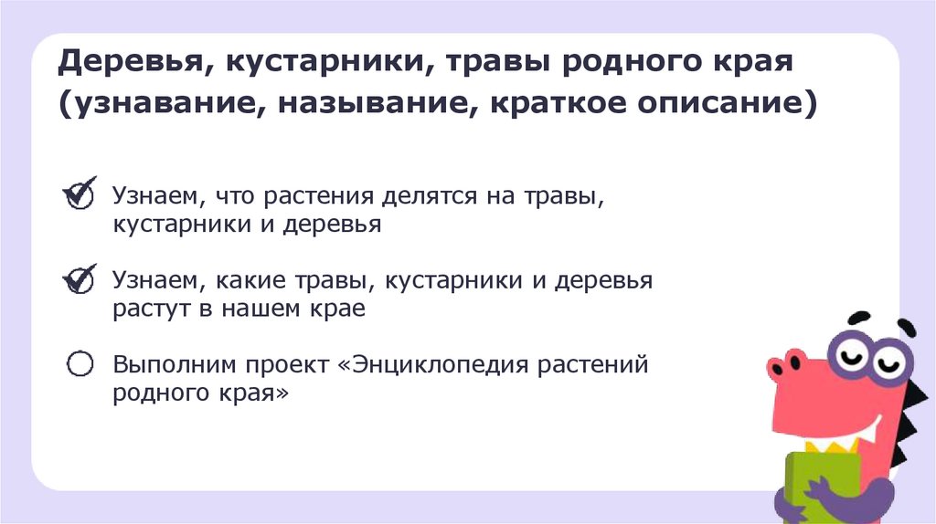 Деревья, кустарники, травы родного края(узнавание, называние, краткое описание)