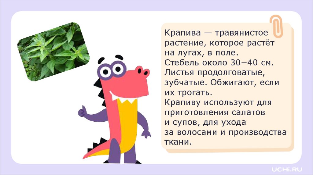 Крапива — травянистоерастение, которое растёт