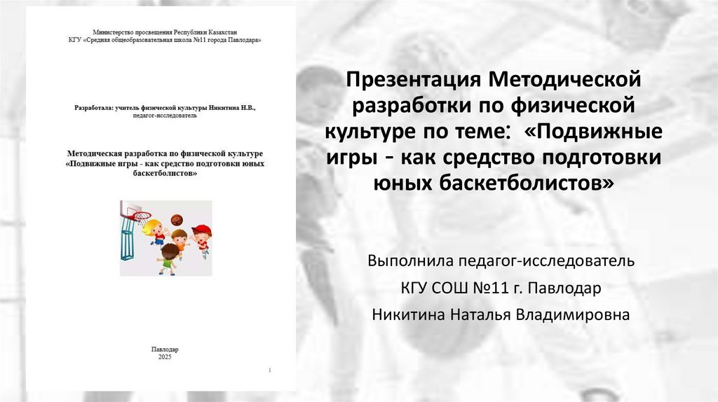 1. Презентация Методической разработки по физической культуре по теме: «Подвижные игры - как средство подготовки юных