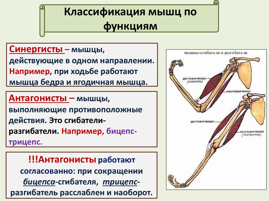 действия. Это сгибателиразгибатели. Например, бицепстрицепс.