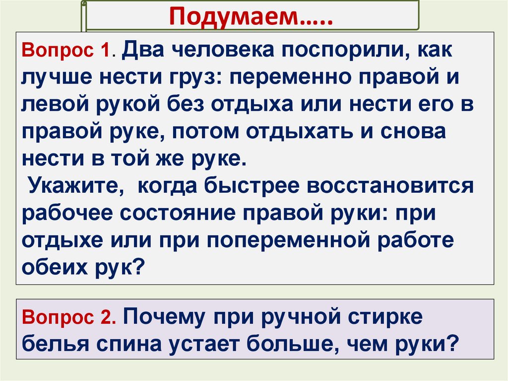 Подумаем…..Вопрос 1. Два человека поспорили, как