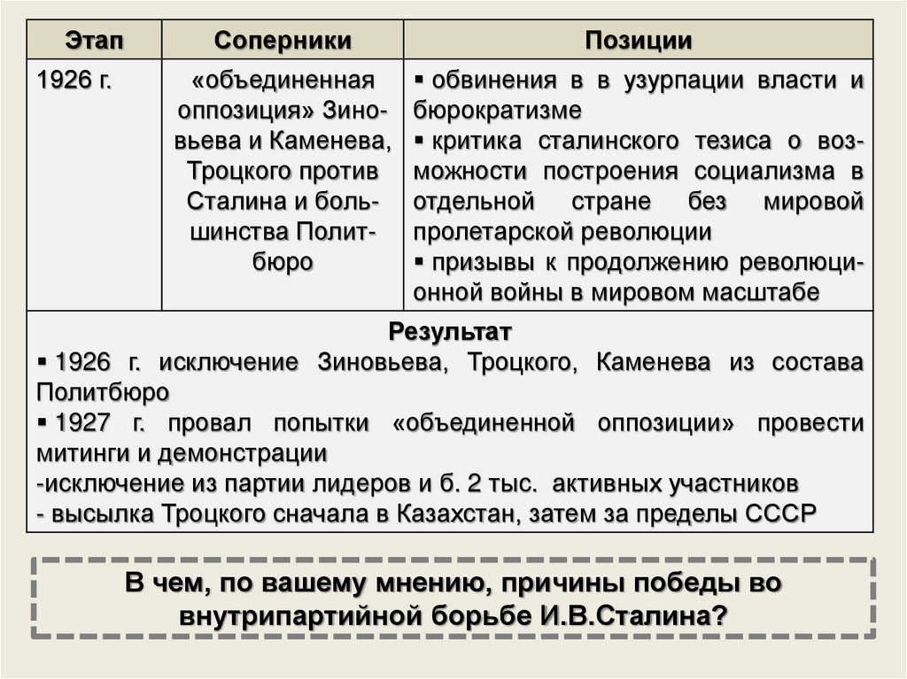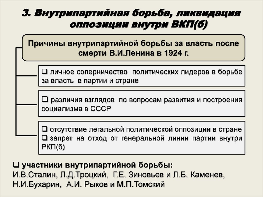 3. Внутрипартийная борьба, ликвидацияоппозиции внутри ВКП(б)