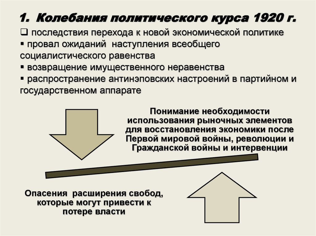 1. Колебания политического курса 1920 г.последствия перехода к новой экономической политике