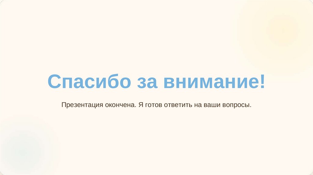 Спасибо за внимание!Презентация окончена. Я готов ответить на ваши вопросы.