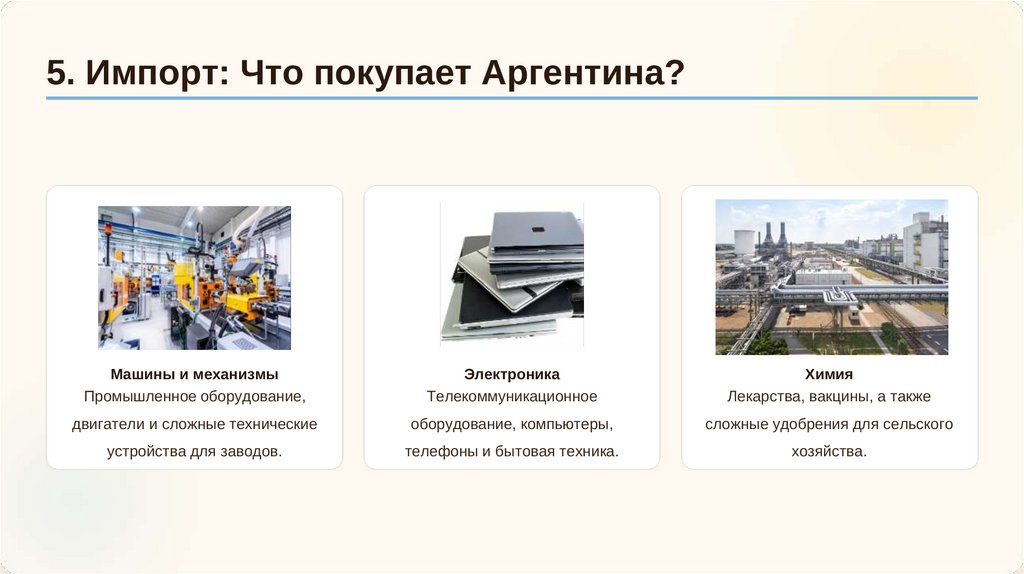 5. Импорт: Что покупает Аргентина?Машины и механизмы