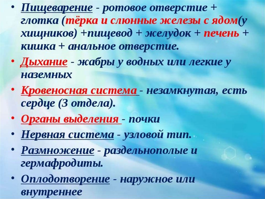 11. Внутреннее строение Моллюсков