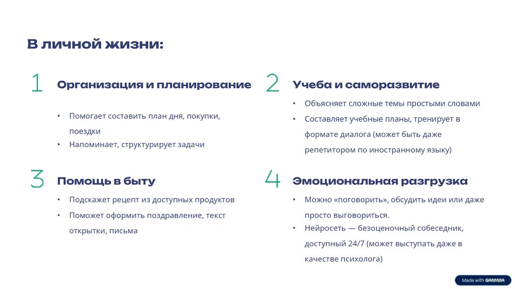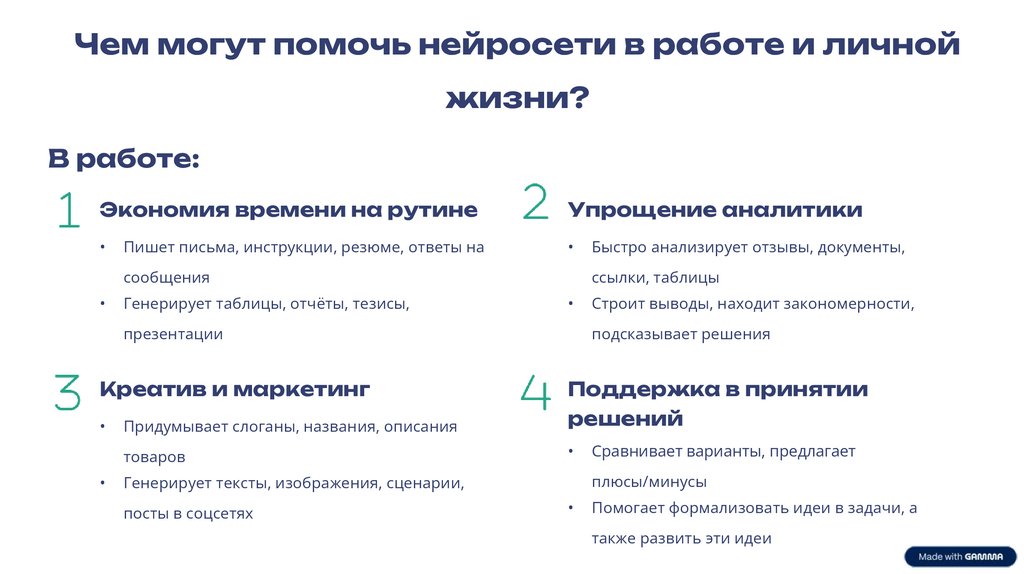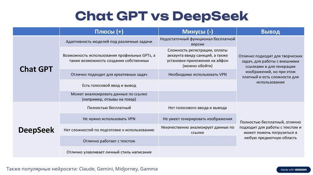 Также популярные нейросети: Claude, Gemini, Midjorney, Gamma