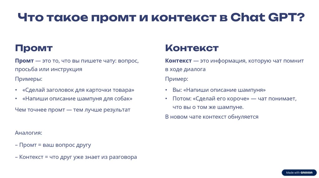 Правильно написание промтов: начинайте с глагола, указывайте формат