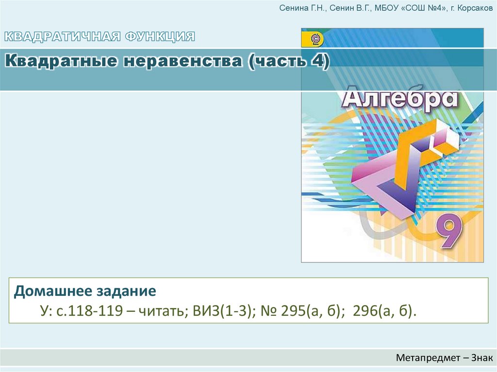 Сенина Г.Н., Сенин В.Г., МБОУ «СОШ №4», г. КорсаковКвадратные неравенства (часть 4)
