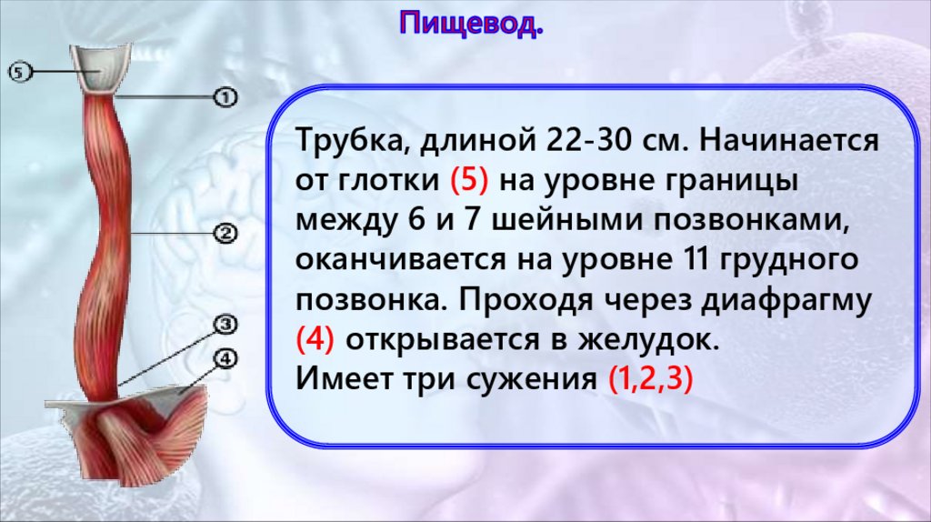 глотки, пищевода, желудка,