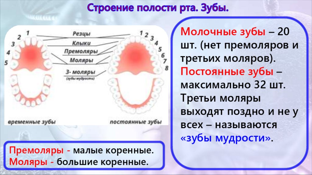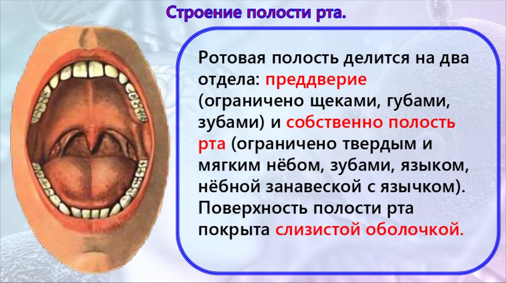зубами) и собственно полость