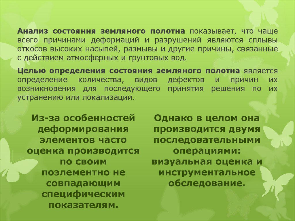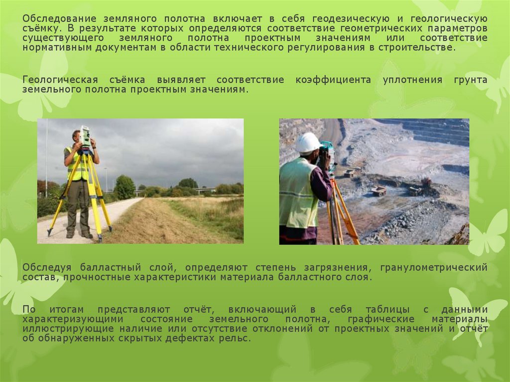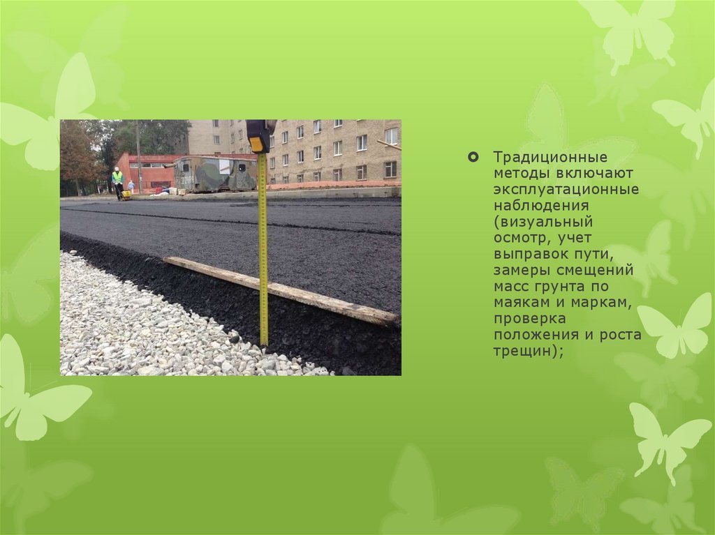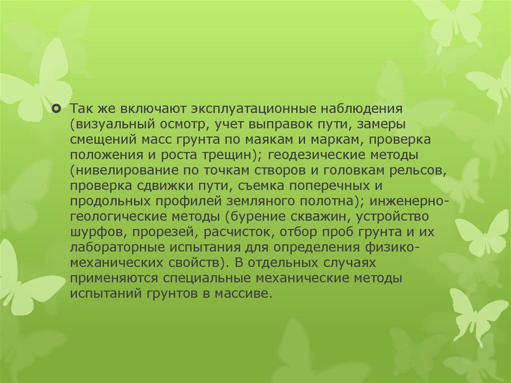 Так же включают эксплуатационные наблюдения(визуальный осмотр, учет выправок пути, замеры