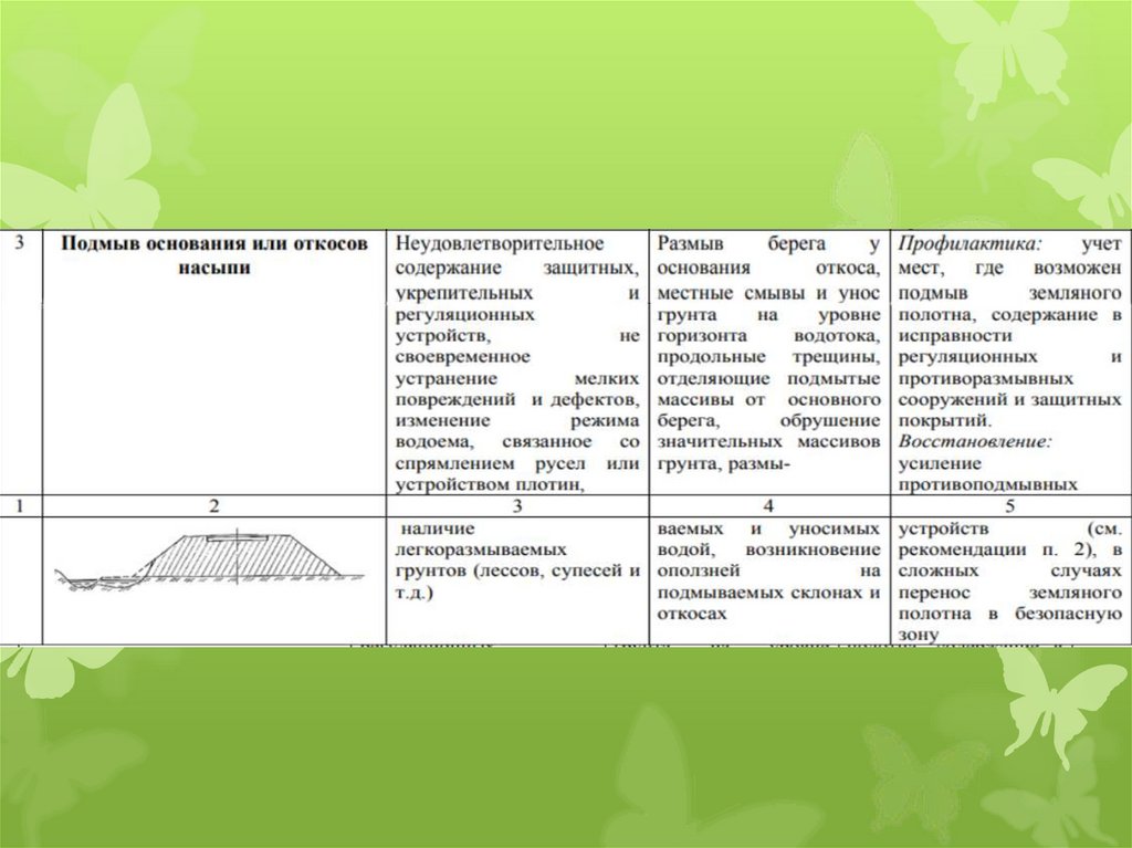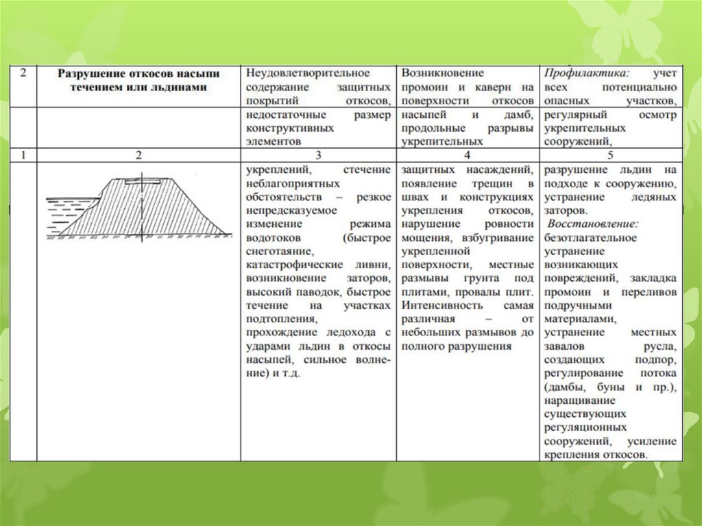 повреждений, чрезмерно большая скоростьводного потока, наличие легкоразмываемых