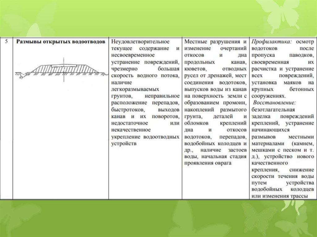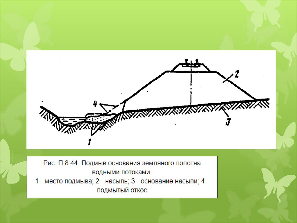 75. Это приводит к местным разрушениям и изменениям очертаний откосов, дна продольных канав, кюветов, отводных русел от дренажей,
