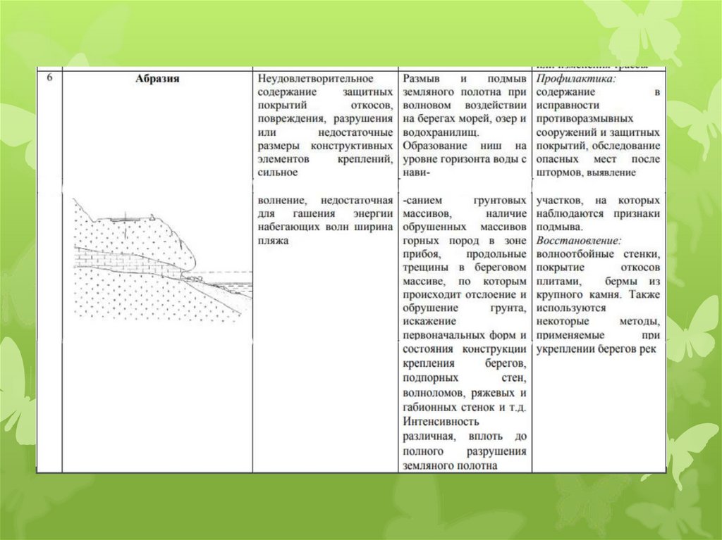несвоевременное устранение повреждений и дефектов вконструкциях защитных и укрепительных устройств и