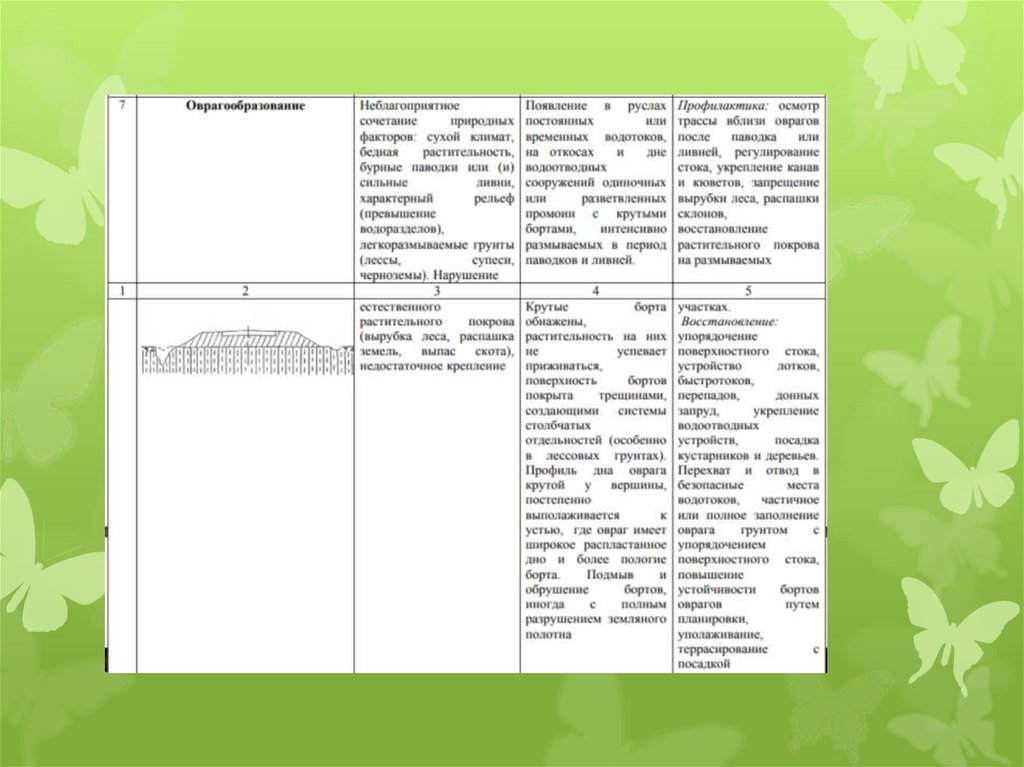 Профилактика: осмотр трассы вблизи оврагов после паводкаили ливней, регулирование стока, укрепление канав и