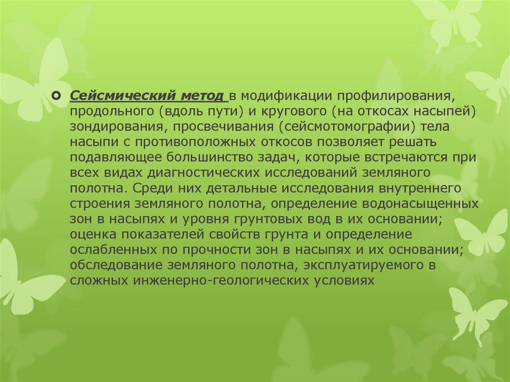 Сейсмический метод в модификации профилирования,продольного (вдоль пути) и кругового (на откосах насыпей)
