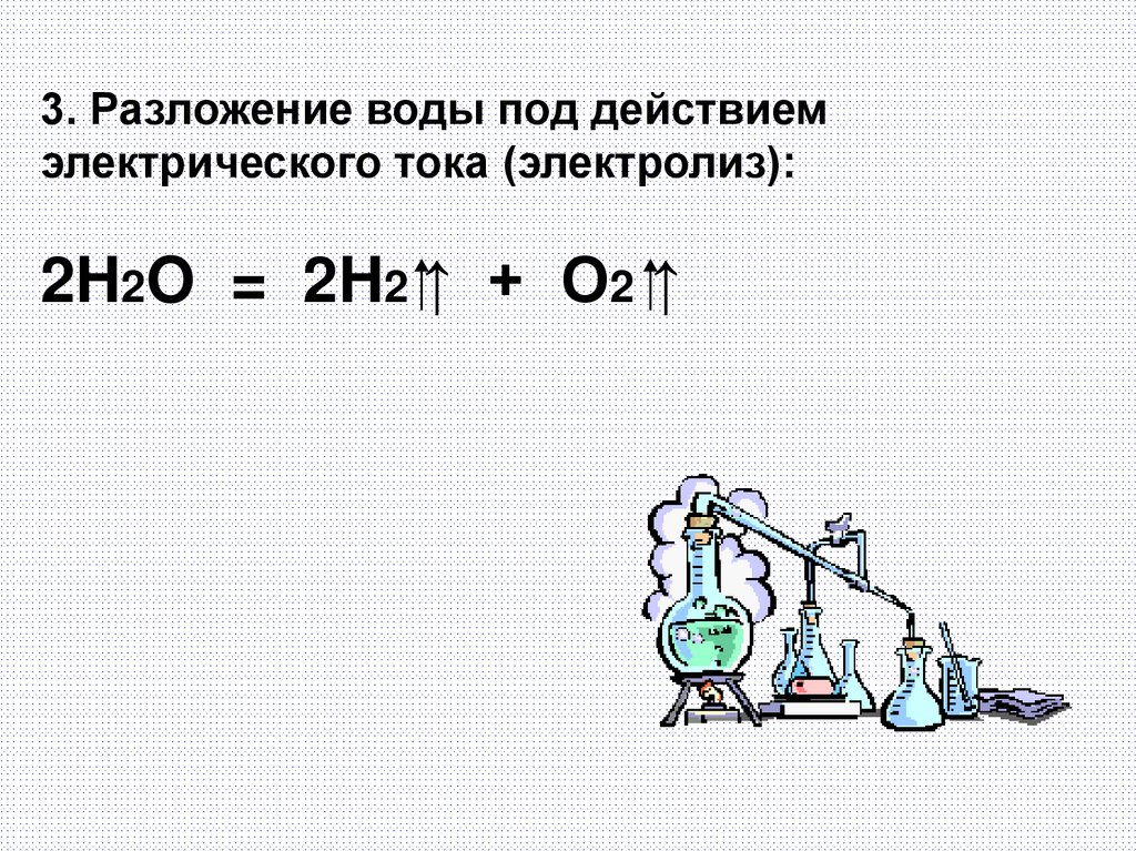 3. Разложение воды под действиемэлектрического тока (электролиз):
