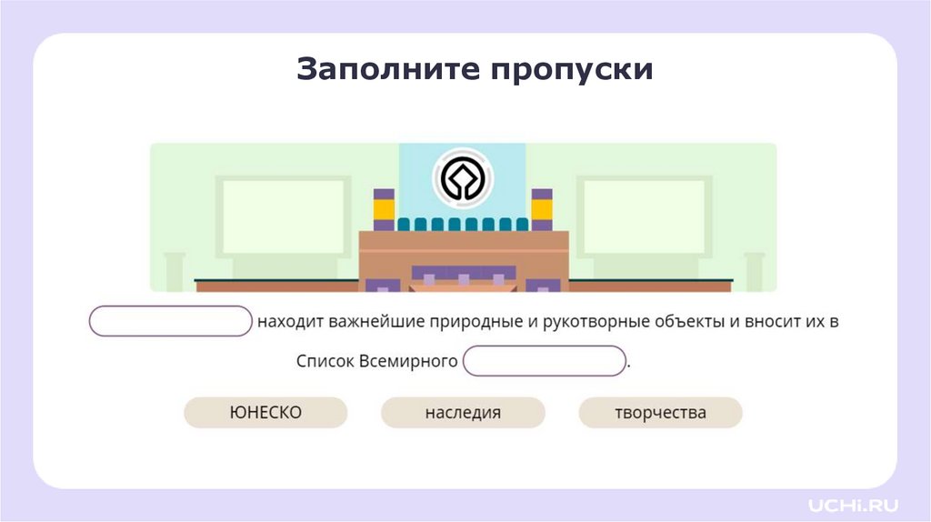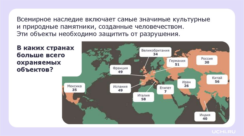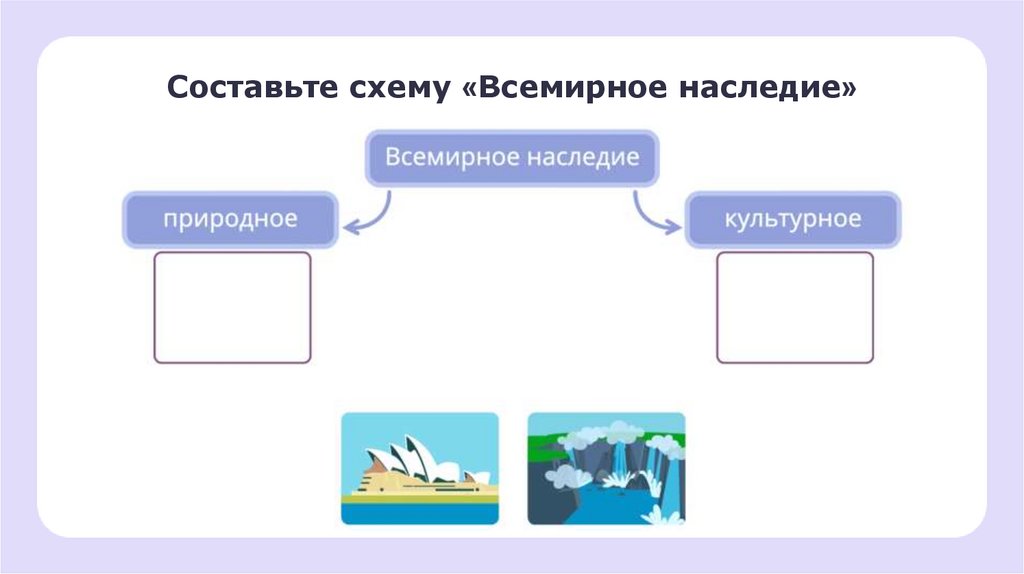 Составьте схему «Всемирное наследие»3.